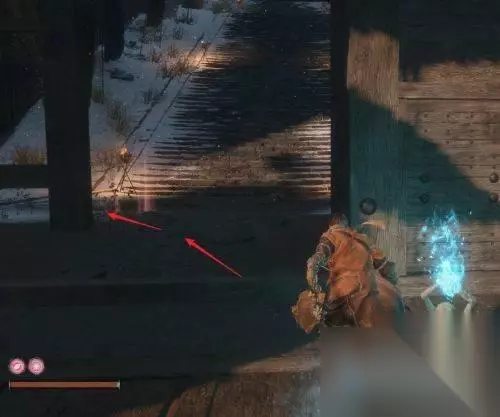 绕过敌人后,跳下这里的洞口。