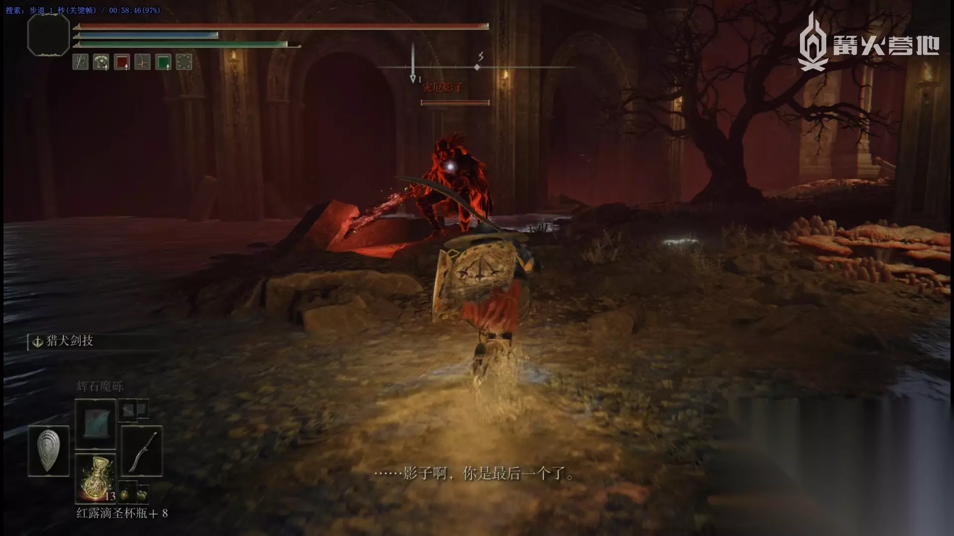 再次和杰廉对话,可以选择「询问关于伊吉」,然后前往下图的赐福「利耶尼亚湖(北岸)」,向北走进入「王室领地废墟」,找到在废墟北侧崖边读书的伊吉,选择「关于杰廉」,就可以推动祭典举办了。 回到红狮子城,和亚历山大对话,然后去和站在台上的杰廉对话,开启祭典,然后从深处的升降梯下到沙滩,触碰传送门,开始 Boss「“碎星”拉塔恩」的战斗。 击败Boss「“碎星”拉塔恩」【Boss 奖杯 / 成就 ⑩】,群星重新开始转动,一发陨石集中了交界地,和 Boss 战区域的布莱泽对话,再和同区域的亚历山大对话。然后在这个区域朝北边前进来到「英灵地下墓地」,击败 Boss「腐烂树灵」可以获得传说骨灰 ③「“红狮子骑士”奥加」。 在湖之利耶尼亚东侧,可以找到亚历山大,这次不要直接打他,先制作一个「油壶」扔到他的背部,再打几下助他脱身。油壶的制作书可以从迷雾森林的入口井到希弗拉河底层,然后在东部的脚手架进入石墙内和商人购买。