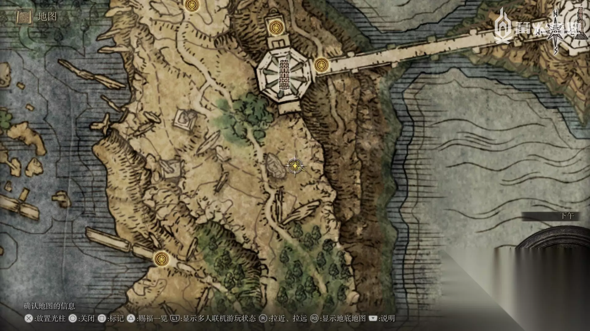 在月光祭坛的西北区域有「刀之首的封印监牢」,击败 Boss「“黑刀之首”亚勒托」可获得此传说骨灰 ⑤「“黑刀”狄希」。 然后来到月光祭坛西南侧的希耶罗那魔法师塔,和门口的封印互动一下,开启该魔法师塔需要找到三个乌龟,位置如下(主要找乌龟的途中不要与赐福互动,否则会出现乌龟消失的 Bug): 第一个乌龟,可以踩上去直接同归于尽,当然用魔法弓箭直接远距离干掉它更好;
