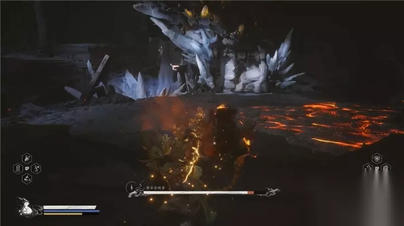 战斗中,玩家可以先使用妙仙葫芦提神,然后进行三段蓄力攻击,等待BOSS张嘴完毕时一棍子挥出去打头使其趴下。 趴下后用花棍攒能量,接着甩蝎子尾针上毒。瞅准时机放定身术定住它,再进行三段蓄力攻击。 之后变身为小黄龙,站冰门边儿上勾引BOSS破门,进入下一个战场。