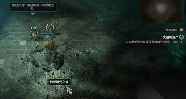 3、到达后是需要玩家前往完成任务要求,随后就是需要为克塞妮娅的仪式放置被诅咒的剑刃。