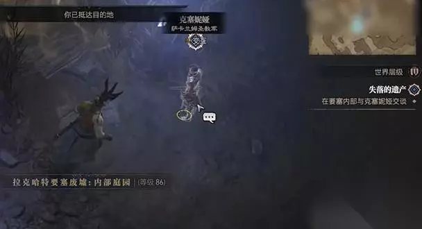 暗黑破坏神4全支线任务攻略汇总 暗黑4失落的遗产任务攻略 1、首先是先进入游戏中,随后就是需要到达拉克哈特要塞废墟: 内部庭园,到达后是跟克塞妮娅进行对话。