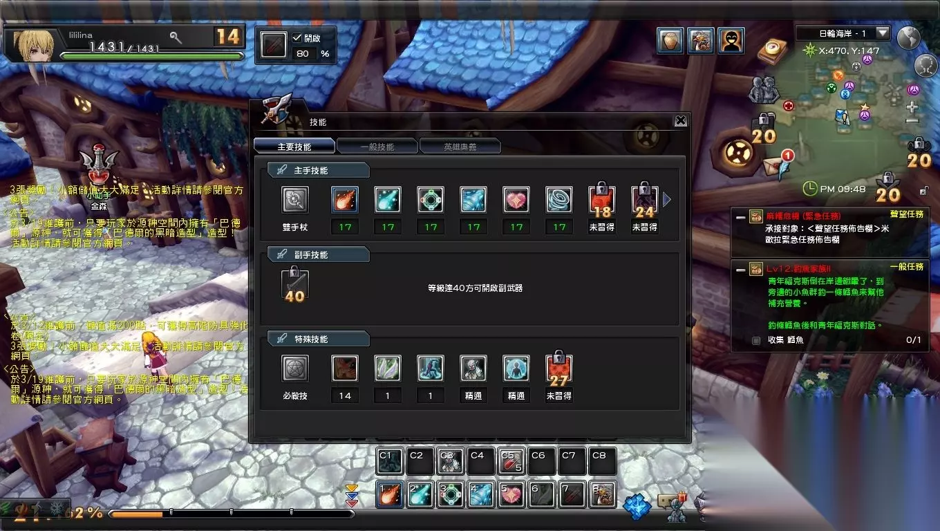 双武器界面 当玩家达到40级以后,便可以装备第二武器,双武器的设定也使得幻想神域游戏性上有了提升。两把武器如何搭配则是需要玩家动脑筋的地方,而双持武器带来的最大收益自然也是可以释放相关武器技能,合理搭配武器也会使玩家角色战斗力提高不少。 玩家升级后,会有属性点玩家可以提升主属性,升级后同时还有冒险点数,玩家在冒险之路中可以选择,也可以提高玩家的战斗力,也可以说是天赋树的另一种形态。 幻想神域的源神系统与国产游戏中的“宠物”类似,可以协助玩家进行攻击,当然若想宝宝强力,各种神奇的物质自然是必不可少的。而源神也可以进行制造,但上源神体力值低于10点时,它就累了,不干活了,这时需要玩家与源神进行对话,三选一的选项,笔者切回桌面看了看快捷方式,是真的没有点错打开养成游戏。 幻想神域中的技能能支持强化。当玩家到达相应等级后便可以开启强化技能,玩家可以在几种强化效果之间进行选择,类似于暗黑3技能选择系统。 内含多种副本 任务系统丰富幻想神域中除了在野外打怪,还有副本供玩家进行挑战。20级之前的副本多为剧情副本,难度也相对简单,放几个火球就可轰趴的水平。而当玩家达到20级以后便可开启组队模式,寻找队友进行挑战。