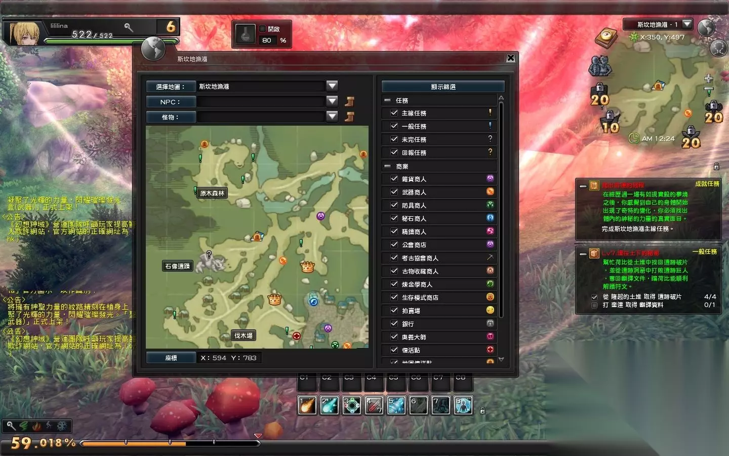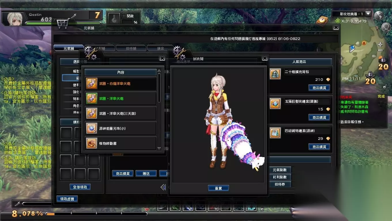 地图界面 幻想神域中的任务系统也是相当丰富的,除了主线、支线、日常任务以外,还有隐藏任务。由于游戏支持自动寻路,所以任务显得相对无脑,而隐藏任务的引入,NPC只会提供给玩家相应任务道具,以及对白说明,于是玩家就不能无脑猛戳下划线进行任务了。当然如果掌握隐藏任务的规律,也是相当简单的。此外游戏中经常会遇到夫妻不和、迷失少女、老人忆往昔等情节,停下来听听他们的故事,也会赠与玩家相当丰厚的奖励。 商城常规无亮点 货品种类齐全