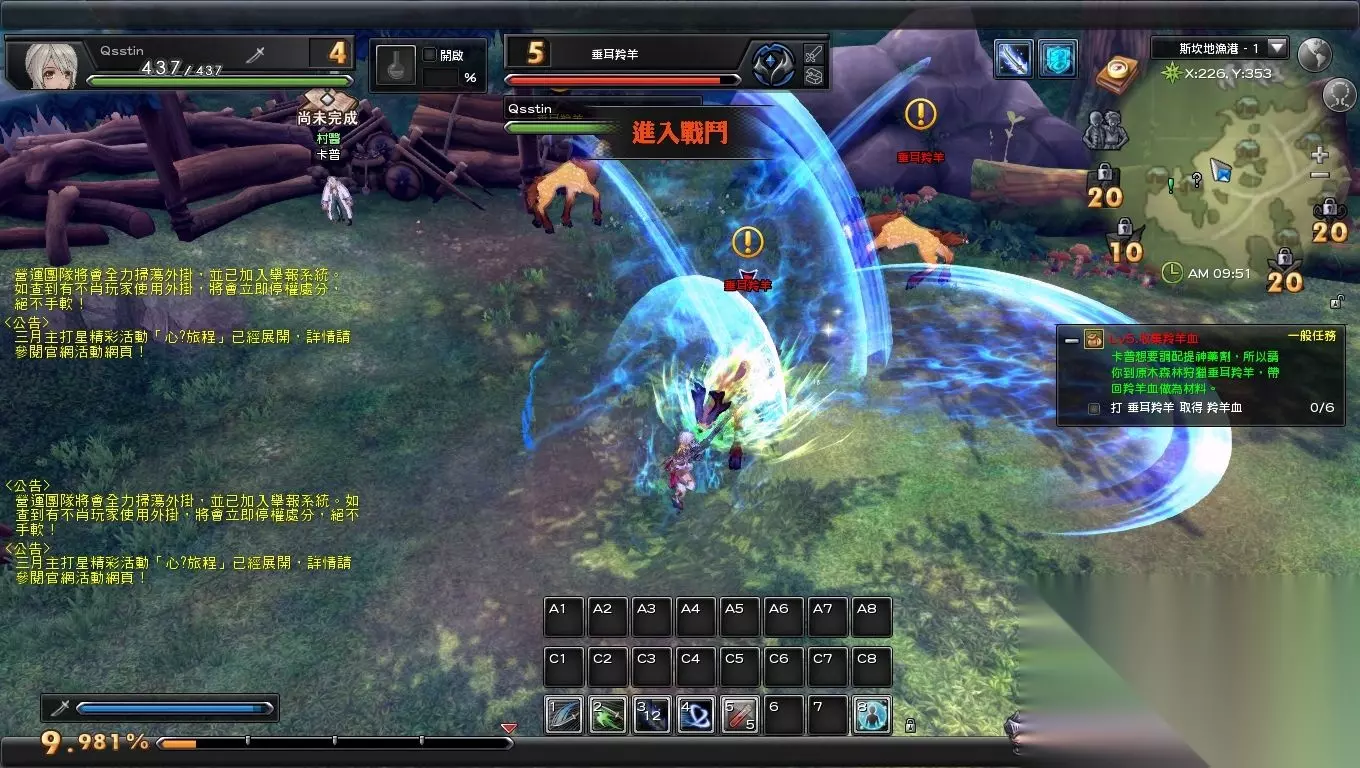 战斗画面 游戏中有11个职业可以提供给玩家进行选择,而每种职业也都拥有独特的攻击系统。双手斧可以随着怒气值提升而攻击效果提升,双手仗法师会在每次释放元素法术时积累元素刻印,释放刻印就可以增加相应元素法术的效果。而最爽的莫过于太刀职业,在积攒了足够能量以后,便可以一口气释放“我流乱舞太刀”连续的斩击另笔者视觉上有了充足的享受,每种职业特色还是相当分明的。 幻想神域的操作方式也是十分简单,与魔兽世界操作基本相同,默认WSAD为方向控制键,而技能栏上也有对应按键的快捷键提示。游戏中的UI布局也是相当合理,为玩家提供了足够大的视野观察四周,当然游戏UI也可以自由缩放大小,玩家可以自由调整。 交响乐级BGM 技能音效齐全幻想神域的背景音乐与著名单机游戏系列英雄传说中的背景音乐风格相同以交响乐为主。游戏内多使用西洋乐器如长笛、小提琴等带给玩家宽广宏大的感觉,静音下游戏绝对是耳朵的损失。而在不同场景中,背景音乐也会切换到与场景相对应的音乐中,表现很到位。