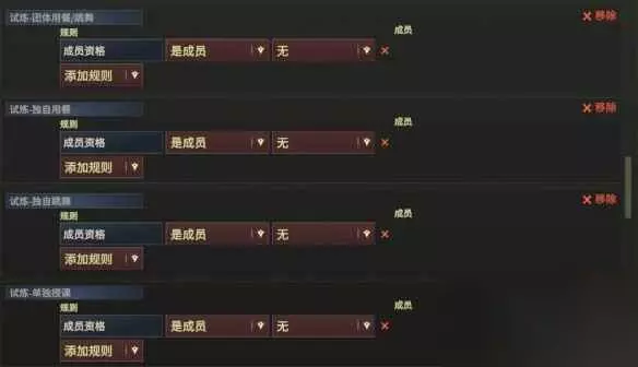 WYY 然后是区分组,主要是把没有三种独身试炼(独身上课、学习、吃饭)的学生区分出来方便自动完全团体试炼。(独身上课、学习、吃饭的教导石、餐桌、唱片机在地下另外设置,并指定独身试炼组使用)。WYY 团体教室教导石要设置权限只给区分-非单独授课组,公共休息室的床权限仅学生,餐桌、唱片机要设置成给区分-非单独用餐组、区分-非单独跳舞组:教师宿舍床权限仅教员,音乐室唱片机仅教员(随便一提:团体试炼要在6人以上房间上课、学习、吃饭,所以建议同批学生尽量招6个以上)WYY