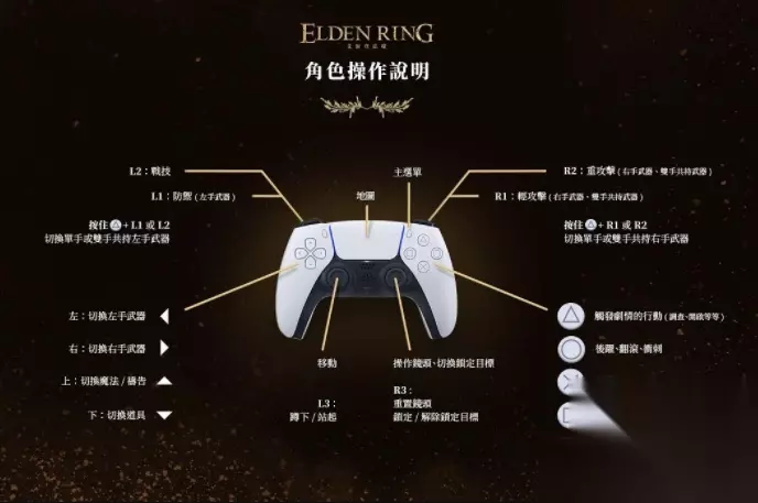 卢恩 游戏环境 卢恩 打败敌人或使用道具可获得卢恩。可使用卢恩升级角色、购买道具、强化武器及防具。 赐福 在这个世界里,有称为「赐福」的休息地点。在赐福休息能完全恢复HP、FP,并治愈异常状态,也能补充圣杯瓶。但是大部分的敌人也会随之复活。 「赐福」说明 抵达初次发现的赐福后,按下【△/Y】触碰赐福。再次按下【△/Y】,即可打开菜单,选择休息。还没有被发现的赐福会散发光芒。 「赐福」菜单 在赐福休息时,可以使用赐福的菜单。选项会随剧情推进产生变化。 消磨时间:改变游戏内的时间。 升级:强化角色的能力。 增加使用次数:增加圣杯瓶的使用次数。 提升恢复量:提升圣杯瓶的恢复量。 分配使用次数:分配圣杯瓶的使用次数。 记忆:将已学会的魔法装备于记忆空格中。可使用的记忆空格数量会随角色状态改变。 调配灵药:可以用收集到的结晶露滴进行调配,自行设置灵药圣杯瓶的效用。 整理木箱:将持有道具收进木箱,或是从木箱拿出道具。 已经发现的赐福将会出现在地图上。从地图上选择想前往的赐福,即可发送过去,但赐福发送在某些地下迷宫中无法使用。 赐福的指引 部分赐福仍留有指引的力量,会以金黄色的光芒轨迹,指出褪色者该前进的方向。可于地图菜单中找到赐福的指引。 召唤 在还魂碑附近时,画面左侧会出现碑文图案,这时可以使用骨灰道具召唤灵魂。当灵魂的HP归零、成功击败头目,或是离开还魂碑一定的距离,灵魂都会消失。再次使用相同的骨灰道具进行召唤时,先前召唤出来的灵魂会消失。在同一时间内只能召唤1种灵魂,且无法于多人连接游玩时召唤灵魂。 玛莉卡楔石 死亡之后,会在最后休息的赐福复活。如果死亡地点附近有玛莉卡楔石,也能选择在那里复活。你可以查看是否有出现状态图案(玛莉卡楔石的图案) ,来确认是否在玛莉卡楔石的效用范围内。 灵马 使用灵马哨笛能召唤出灵马,骑马行动。灵马死亡后能再一次召唤,但必须消耗1瓶红露滴圣杯瓶。 地图 可以确认自己的所在位置、地形以及建筑物等等信息,也可于地图上放置标记。可于地图菜单中发送至已知的赐福,但和敌人战斗时,无法打开地图。 鸟瞰镜 使用散置各地的鸟瞰镜,能以鸟类的视野观察前方道路。 死亡 HP归零时即为角色死亡。死亡时,持有的所有卢恩会留在死亡地点。你可以回到死亡地点取回卢恩,但若是在拿回卢恩之前再次死亡,卢恩将会消失。 基本动作 移动 行走/奔跑朝左摇杆推动的方向移动。轻推左摇杆即可行走,用力推动左摇杆则可奔跑。 冲刺按住【?/B】并推动左摇杆以进行冲刺。会消耗精力。在冲刺时,按下【R1/RB】会发动冲刺攻击。 翻滚推动左摇杆并按下【?/B】,角色将朝左摇杆推动的方向进行翻滚。可以利用翻滚闪避敌人的攻击。 跳跃按下【?/A】跳跃。在冲刺时跳跃,可以跳得更远。 后跃在静止状态按下【?/B】能后跃。后跃后按下【R1】即可进行冲刺攻击。 蹲下按下【L3/L】蹲下。在草丛蹲下,藏身效果更佳。在没有被敌人发现的情况下攻击,第一击能够比一般攻击给予更多的伤害。 攀爬梯子靠近梯子后,按下【△/Y】即可登上梯子,再推动左摇杆即可向上或向下攀爬梯子。于攀爬时按下【?/B】,即可加快攀爬的速度;若连按两下【?/B】,则会松开梯子坠落。 战斗:基础攻击及防御 于游戏中遭遇敌人时,会受到攻击。 锁定目标 按下【R3/R】可将附近的敌人锁定为目标。于目标锁定时推动右摇杆,即可切换目标。锁定的目标将保持在前方。 右手武器动作 按下【R1/RB】或【R2/RT】,使用装备于右手的武器进行攻击。 左手武器动作 按下【L1/LB】或【L2/LT】,使用装备于左手的武器进行攻击。可将盾牌装备于左手,并按下【L1/LB】进行防御。当装备的盾牌或双手共持的武器具备战技,按下【L2/LT】即可使出战技。 切换单手及双手共持武器 按住【△/Y】后,再按下【R1/RB】或【R2/RT】即可以双手共持右手武器,或是按下【L1/LB】或【L2/LT】,即可以双手共持左手武器。当你以双手共持武器时,无法使用原本装备于另一只手的武器,但你的攻击将造成更多损伤,且更容易突破敌人的防御。 使用战技 于双手共持武器时,按下【L2/LT】,即可使用装备于该武器的战技。根据不同战技,可按下【R1/RB】、【R2/RT】或【L2/LT】,使出各式衍伸攻击。若左手无装备任何武器(或装备特殊武器),则无需以双手共持的方式来施放右手武器的战技。 每次施放战技都将消耗FP,当FP归零时,便无法再施放任何战技。借由不同战灰,可赋予武器不同战技。武器的类别将决定可携带的战灰类别。 格挡 将具备格挡战技的盾牌装备于左手后,按下【L2/LT】即可对敌人的攻击进行格挡。你可以借由格挡,创造使出「致命一击」的机会。有些敌人不会因为一次格挡就失去平衡。 其他动作 切换装备 利用装备菜单切换装备。使用【←】按钮切换左手武器,【→】按钮切换右手武器,【↑】按钮切换魔法/祷告,【↓】按住【↑】或【↓】按钮的话,道具或魔法就会显示在第一个空格。 使用道具 按下【□/X】使用装备在身上的道具。 高端指南:特殊攻击 跳跃攻击 跳跃时,按下【R1/RB】或【R2/RT】使出跳跃攻击。跳跃攻击容易让敌人失去平衡。当敌人骑马时,则是容易让对方坠马。 落下攻击 坠落时,按下【R1/RB】或【R2/RT】,从上方攻击敌人。 梯上攻击 在向上或向下攀爬梯