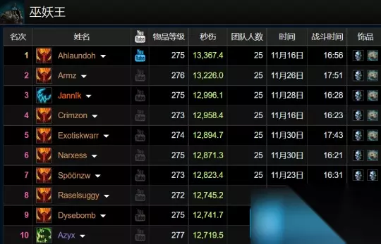 总结:以上是魔兽世界WLK怀旧服ICC副本最新职业排行介绍,希望这篇文章能帮助到大家,更多攻略请关注魔兽世界专区。