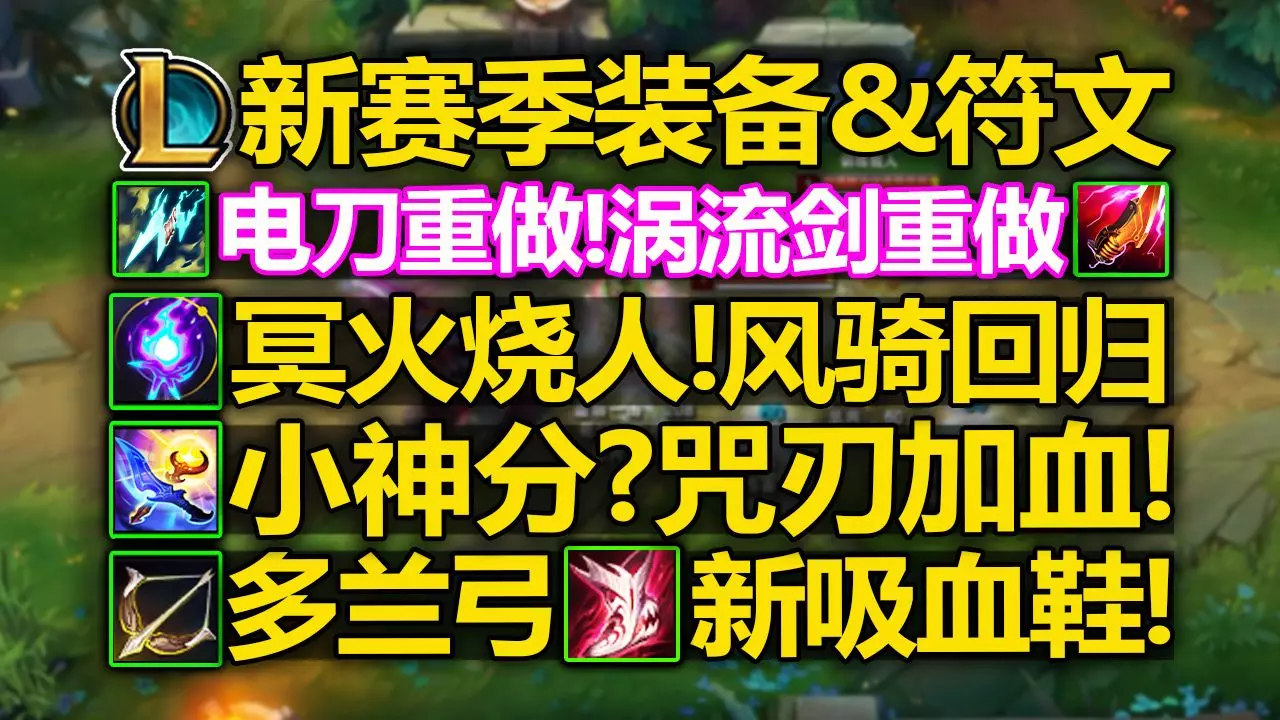 LOL新赛季[装备&符文]改动:新多兰装!新鞋子!黄昏人称小神分!涡流剑技能可触发!彗星基于距离加伤害!冥火风骑演示介绍! 绿毛在此感谢大家的支持,祝大家排位上…