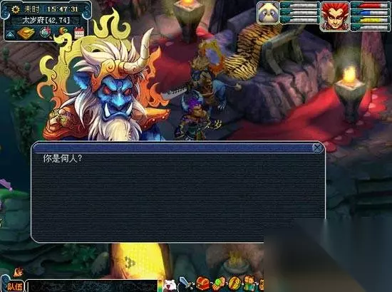 第八步:看到自称是逗笑王的你,有来有去如获至宝,立刻举荐给太岁洞中的赛太岁(太岁府43,77)。赛太岁叫你去给金圣宫解闷。你跟金圣宫(太岁府25,69)亮明身份,她却并不轻信。