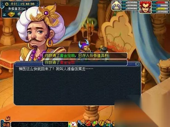 第九步:为了取信于金圣宫,你又回转到朱紫国。朱紫国王(朱紫皇宫67,34)珍而重之拿出一件黄金宝串,原来这是当年金圣宫心爱之物。你将宝串交给金圣宫(太岁府25,69),终于赢得她的信任。