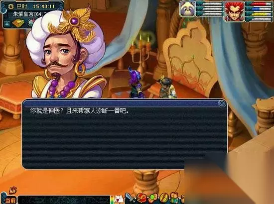 第六步:服用药丸之后,正所谓药到病除。朱紫国王(朱紫皇宫67,34)顿时精神一振,讲述起三年前端午节发生的妖祟之事,你决定前往麒麟山一探究竟。 第七步:刚到麒麟山就碰到一个叫有来有去(麒麟山111,109)的小妖怪,他正在嘀嘀咕咕,为抢宫女的事情犯愁。