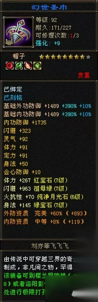 这个帽子真的太绝了!闪避+灵气+体力+定力+身法+会心防御!完美!
