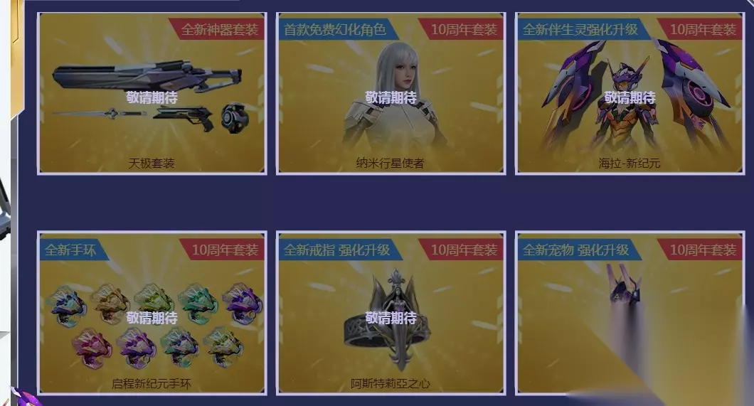 玩家在每周宝箱内每获得1枚十周年金币,将会自动增加1幸运值,开启十周年宝箱获得大奖的概率更高。 10周年登录游戏:7月5日12点后可开放在游戏大厅免费领取天极套装。