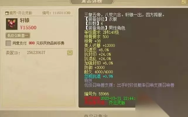 低召带蓝字忽视混0.9的四阶冰衣服15500成交了,要是底子是强混属性的,应该还能涨几千块吧