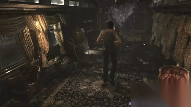 step6.在楼梯间再次遇见了比利,他希望能与瑞贝卡合作,这样才能加大存活的可能性,可是瑞贝卡相当倔强。 在楼梯间的花瓶桌子上可以拿到一份“文件——管理人的通告”。 登上餐厅的2层,瑞贝卡发现一个看似没有受到任何外伤的老人在坐在车厢远处的餐桌上,当瑞贝卡上前打招呼时,老人的头部却掉落在地上,其身体分裂成大量的水蛭并再次组建成一个怪物。 这时候只需要对着水蛭人开几枪就可以将它打退,尽量后退防止被其触手攻击即可。