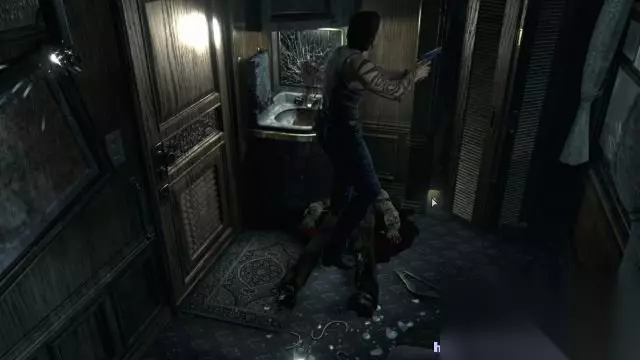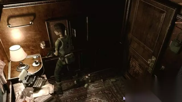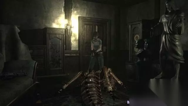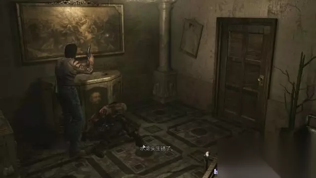 step2.在豪华之所的大厅一层,有三道门,分别是西门、东门和正门(有盔甲剑士挡住去路,这是第一道剑士门),这时候只能够是进入到楼梯东面也就是打字机旁边的门。 在打字机附近可以拿到一个墨盒、两份草药(1红1绿)。 来到餐厅会遭遇到两只丧尸,将其击毙后在餐桌上能够找到一盒手枪子弹。在餐厅与厨房交接有一道火纹之门,需要用火纹钥匙才能打开。 那么只好进入到餐厅北面水龙头附近的门,旁边坐着的士兵丧尸,稍后时间返回它才会苏醒。