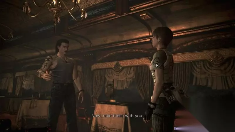 剧情:这时候比利出现在瑞贝卡身后,他表明并没有恶意,只想躲过车厢内的所有怪物存活下去。 比利去找出路了,瑞贝卡无法阻止已经解开手铐的比利,大概她打算追上前时,同为bravo小队的队友爱德华忽然从窗户飞入并且满身是伤、生命垂危。 他提醒瑞贝卡要小心,因为这里如今已经满布怪物和丧尸。爱德华断气后,一头丧尸狗跳进了车厢。