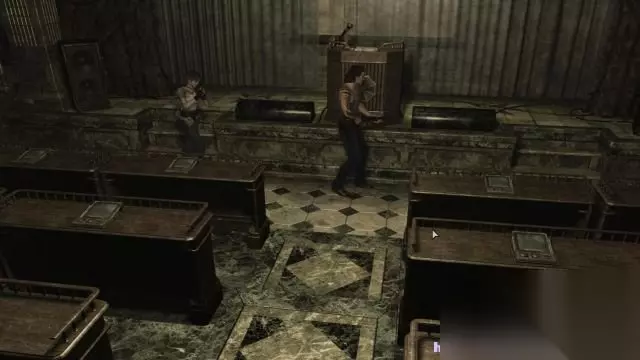 step5.沿着露台行走可以在中部发现三份草药(绿),并且需要击杀4只丧尸。 露台远方的门打开后可以进入到会议室当中。在会议室中,露台的门旁边就有一个剑士门(这是第二道剑士门),去到会议室西面从南往北数起第二排仪器桌上可以拿到一份“文件——培训生管理条例”。 在会议室东北角可以发现一台打字机,墙边可以找到墨盒、散弹枪子弹、手枪子弹。 调查讲坛上的播放器,其需要MO卡带才能够开启。 所以先从会议室的正门去到大厅二层的天秤前,天秤的底座上写着“善良与邪恶达至平衡,崭新的道路会开启”,换言之就是开门之用。