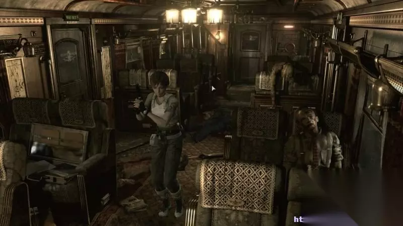 step2.那么只好进入到西面的车厢内,这时候瑞贝卡发现这节车厢内的乘客都变成了丧尸,按住shift键或者是鼠标右键进行瞄准,然后按回车键或鼠标左键进行射击,击杀这节车厢内的所有丧尸。 这节客厢的东面门口左手边有楼梯可以登上二层,可是二层暂时被水蛭堆得满满,无法行走。而门口右侧有一个窗户,探头出去可以发现上方有梯子,需要在后期获得钩绳枪才能够通行。