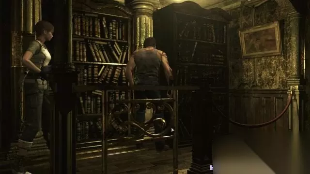 step9.图书馆一进门就会看见一幅地图,这是这座豪华大宅的地图,但不包含地牢的地图。 在门口左侧的油画下方可以发现到磁带A,留意这幅油画,上面提示说只要点燃旁边门上的蜡烛,那么门就可以开启。 这时候切换为比利,比利的特殊道具是打火机,可是打火机没有机油(需要进入到厨房内拿取)。在图书馆的两台电脑旁可以拿到墨盒。 在图书馆内部有一个小型升降机,让比利将刚才获得的曲柄放入到装置内,然后进入solo模式(分头行动),瑞贝卡站在电梯上,然后比利启动电梯,那么瑞贝卡就可以升上钟楼。