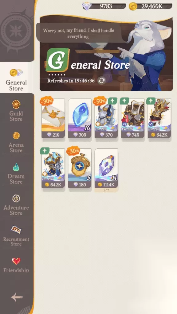 当您外出收集宝箱或冒险进入新区域时,您会遇到各种 NPC。与这些 NPC 接触是你冒险中不可或缺的一部分。 《AFK Journey》的美妙之处在于其精简的战斗系统。在这里,战斗可以是迅速而决定性的。 要发起即时战斗,只需点击敌人即可。寻找左侧的橙色剑图标 - 点击此处,战斗立即结束。当您对胜利充满信心时非常适合!对你的对手感到好奇吗?右侧的图标可让您仔细观察敌方部队,帮助您衡量机会和潜在奖励。 请记住,邻近很重要。如果你距离 NPC 太近,战斗将会自动触发,绕过即时战斗选项。记住这一点,以保持对你的遭遇和策略的控制。快乐探索和战斗! 在 AFK 之旅中掌握战斗模式并驾驭社交和交易方面 商场(商店)
