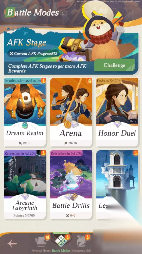 在 AFK Journey 中,“战斗模式”部分是您通向各种战斗体验的门户,每种战斗体验都提供丰富的奖励。 最初,作为初学者,您将可以访问竞技场。每天参加竞技场战斗至关重要,因为它们提供用于在竞技场商店购买英雄的代币。 解锁其他模式需要在 AFK 竞技场阶段取得进展。 奥术迷宫:在 AFK 第 40 阶段解锁 梦境:AFK 第 46 阶段可用 战斗演习:在 AFK 阶段 391 开始 传奇试炼:达到 AFK 阶段 226 后即可进入 公会 在 AFK Journey 中加入公会不仅仅是一种社交活动;这是一个战略举措,尤其是对于新玩家而言。 公会是友情和学习的中心,您可以在这里与新玩家和老玩家建立联系。 当您达到 AFK 阶段 391 并解锁战斗训练时,您将准备好与公会成员组队进行 Boss 战斗并获得特殊奖励。另外,不要错过每周公会任务以获得额外的货币和奖品。 与 NPC 战斗