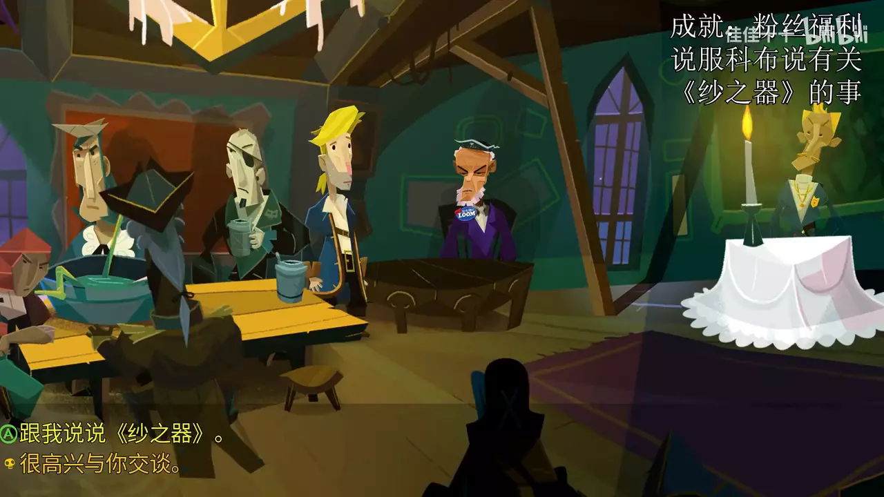 这是转自B站玩家佳佳十十的《重返猴岛》第1幕“牛皮大王”成就获取攻略,展示了该成就的达成方法:在本章开始时选择所有对话,图中呈现了相关对话选项与场景。