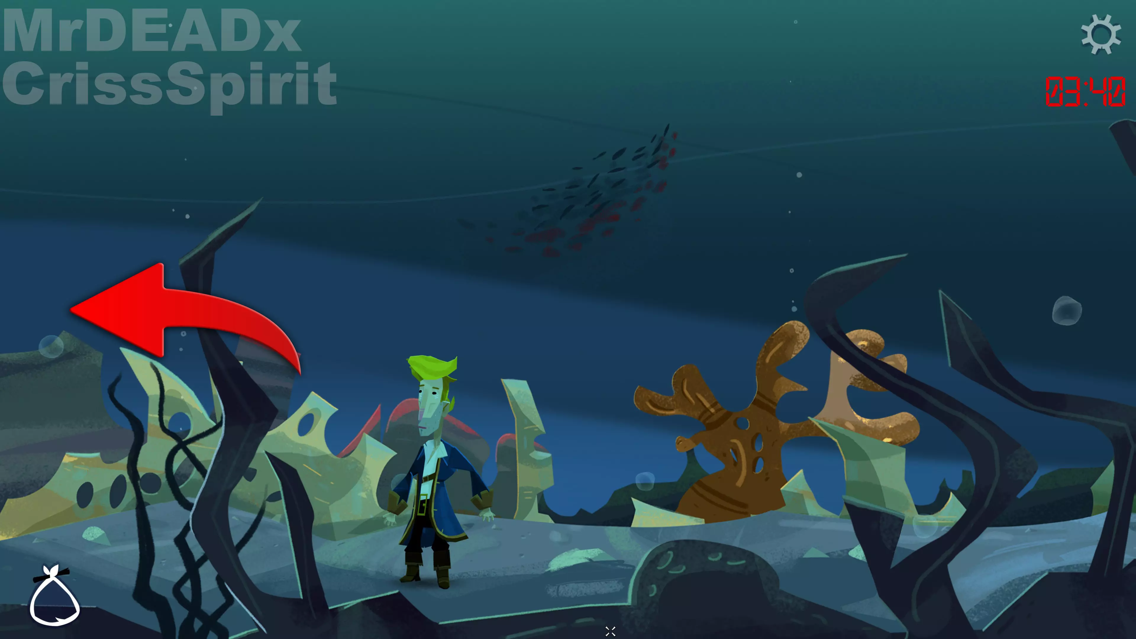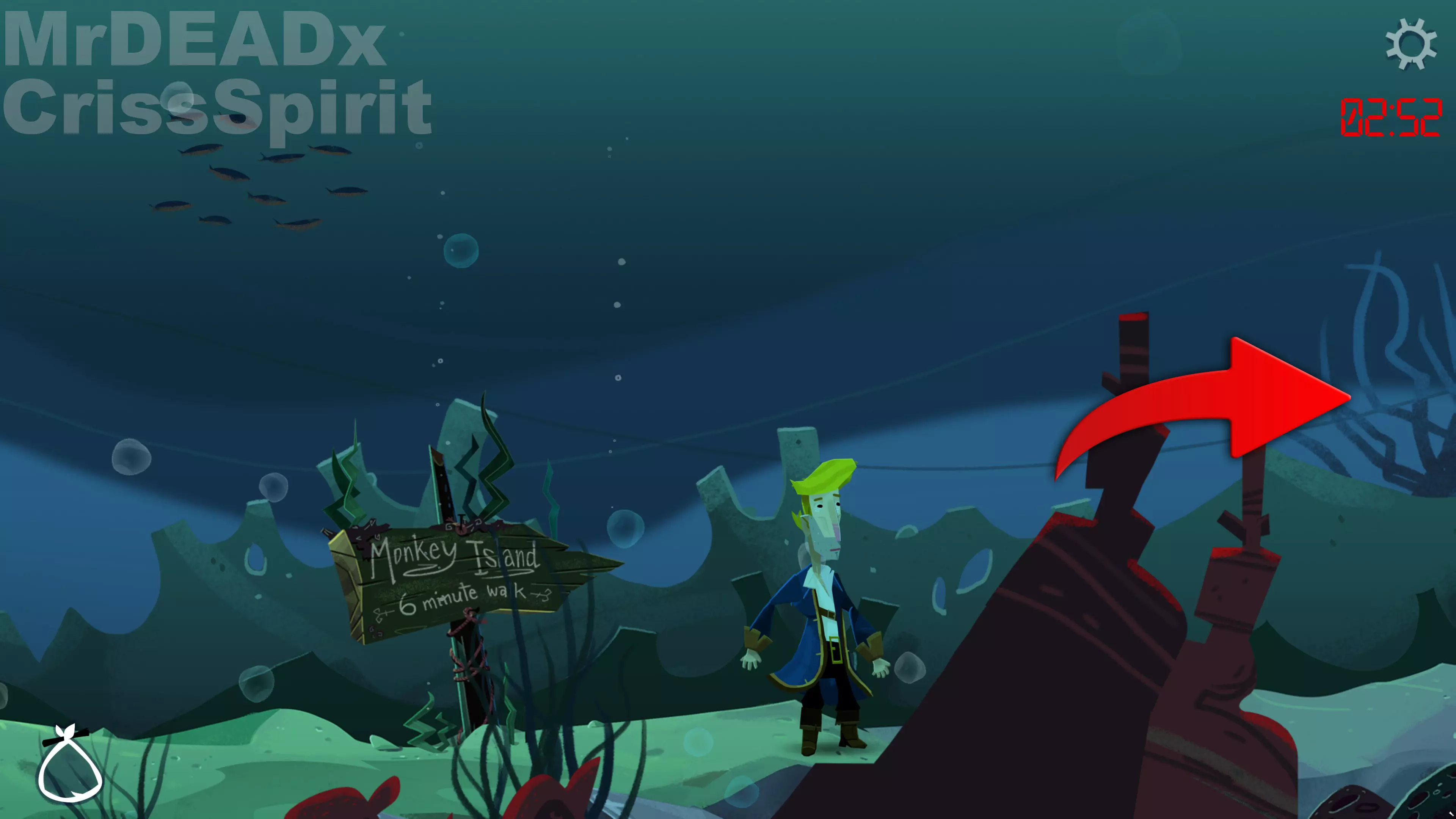 第三部分开始后,你会发现自己身处海底,屏幕右上角有一个计时器,倒计时 8 分钟。