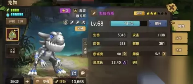 4、符文: 他是一个群攻宠物,因此主要以猛力和残暴为主,和其对应的增如属性是暴击率和攻击为。 5、成长: 点击成长按钮会对宠物成长进行改造,点击改造会随机修改成长的当前属性,并有一定几率提升属性资质上限的情况。 6、图鉴: 图鉴也是非常重要的一项,非常的影响伤害。