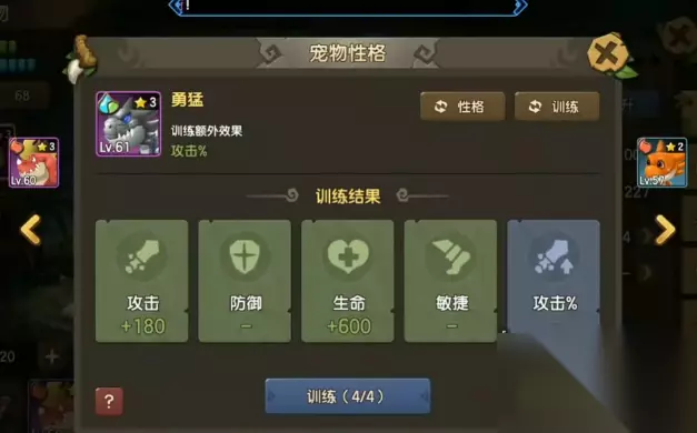 培养攻略: 1、性格: 这个新手机暴是一个群攻的宠物,因此优先推荐的性格是勇敢和暴躁。在性格的说明面板,大家可以看见所有性格对应的属性加成。点击推荐按钮,还可以看见当前宠物推荐的性格。点击性格按钮可以进入到宠物的性格界面,点击重置按钮可以随机生成宠物的性格。需要注意的一点事,重置的性格是随机的,因此就会比较看运气了。在得到自己想要的性格之后,点击改变就能替换成新的性格了。