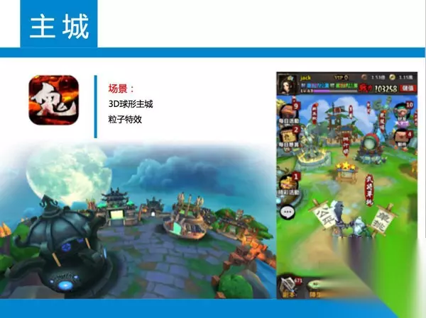 游戏在强制新手指引过后,进入了主城界面,你就会发现一个类似于微型地球的主城界面,地面是弧形,建筑近大远小十分明显,这种布局方式还未在手游上见过,给人非常惊艳的感觉。 人物模型、整体画风,完全用偏水墨画的风格打造,风格非常接近中国对三国时期的印象,并且技能特效也使用浓墨重彩,特别是水墨画风的3D粒子特效,细腻又不失漂移,浓浓的中国风远比同类三国游戏《放开XXX》《三国XXX》等看起来舒服。 评价:4星(满星5星) 整体美术的设计创新点很多,画风也不错,但不喜欢水墨画风的人很难接受,所以达不到满分,可以给予4星。 【二】 武将成长目标直指鬼舞者