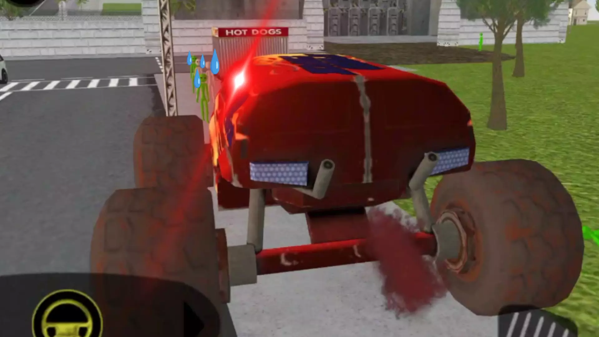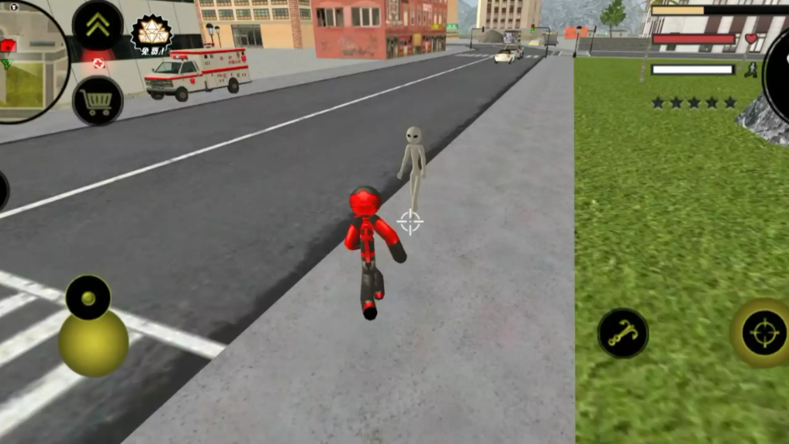 这是《火柴人之绳索英雄》的游戏内容展示,画面呈现了火柴人角色在城市道路中行动,还有多款可驾驶的车辆,包括跑车、怪兽卡车等,能体验城市驾驶与角色探索的玩法。