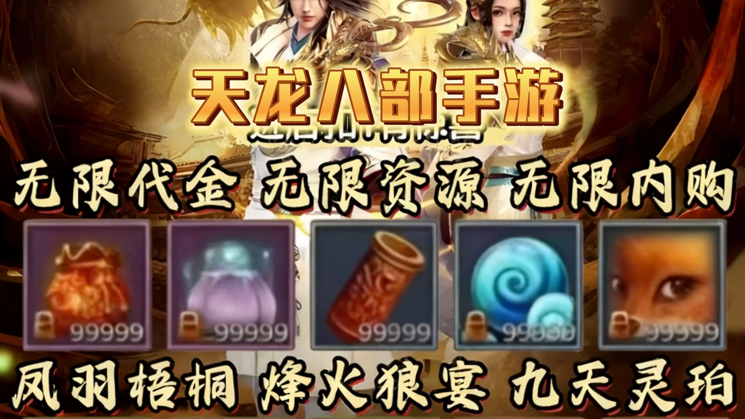 这是怀旧天龙八部手游福利版的宣传,该版本支持零氪玩家霸服,上线就有无限元宝,还能直接解锁重楼装备、领取神兽太古龙魂,图中也展示了背包内大量储备元宝道具。