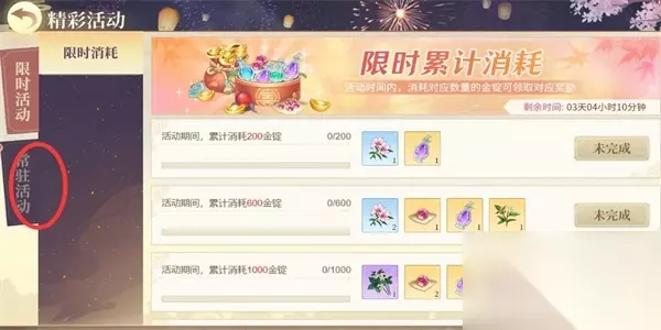 2、点击进入发哦精彩获取页面,在此页面继续点击【常驻活动】的功能选项。