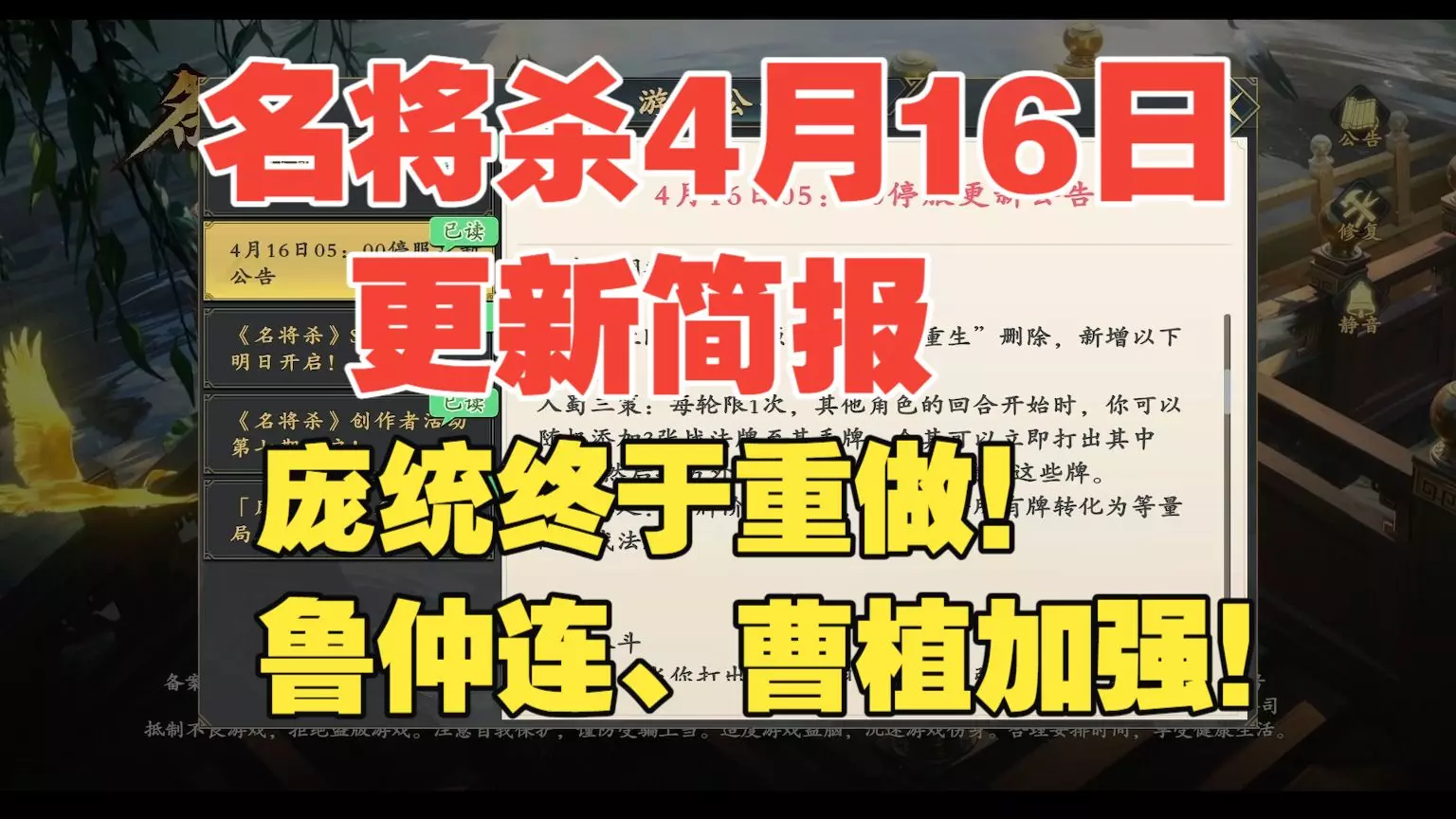 庞统直接变新武将了,鲁仲连大加强,两个新武将都需要配合,单出比较一般。