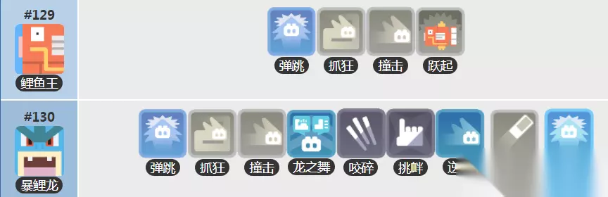 二、技能推荐 攀瀑(水系) 威力:252 等待时间:5s 靠近前方的敌人,然后让水柱从敌人的脚下喷出,被打倒的敌人会受到伤害。 三、宾果推荐 宾果1:任意皆可(破坏光线可以推荐一般系招式伤害加成) 宾果2:任意皆可(破坏光线可以推荐一般系招式伤害加成) 宾果3:攻击力+300 四、推荐理由 无论在正统作品还是动画中,暴鲤龙都是作为大凶残的存在。 虽然暴鲤龙有着一般系技能伤害加成,不过作为暴鲤龙能学习的一般系技能---破坏光线等,由于等待时间过长,并不具有良好的续航性,因此培育暴鲤龙的时候推荐攀瀑技能。