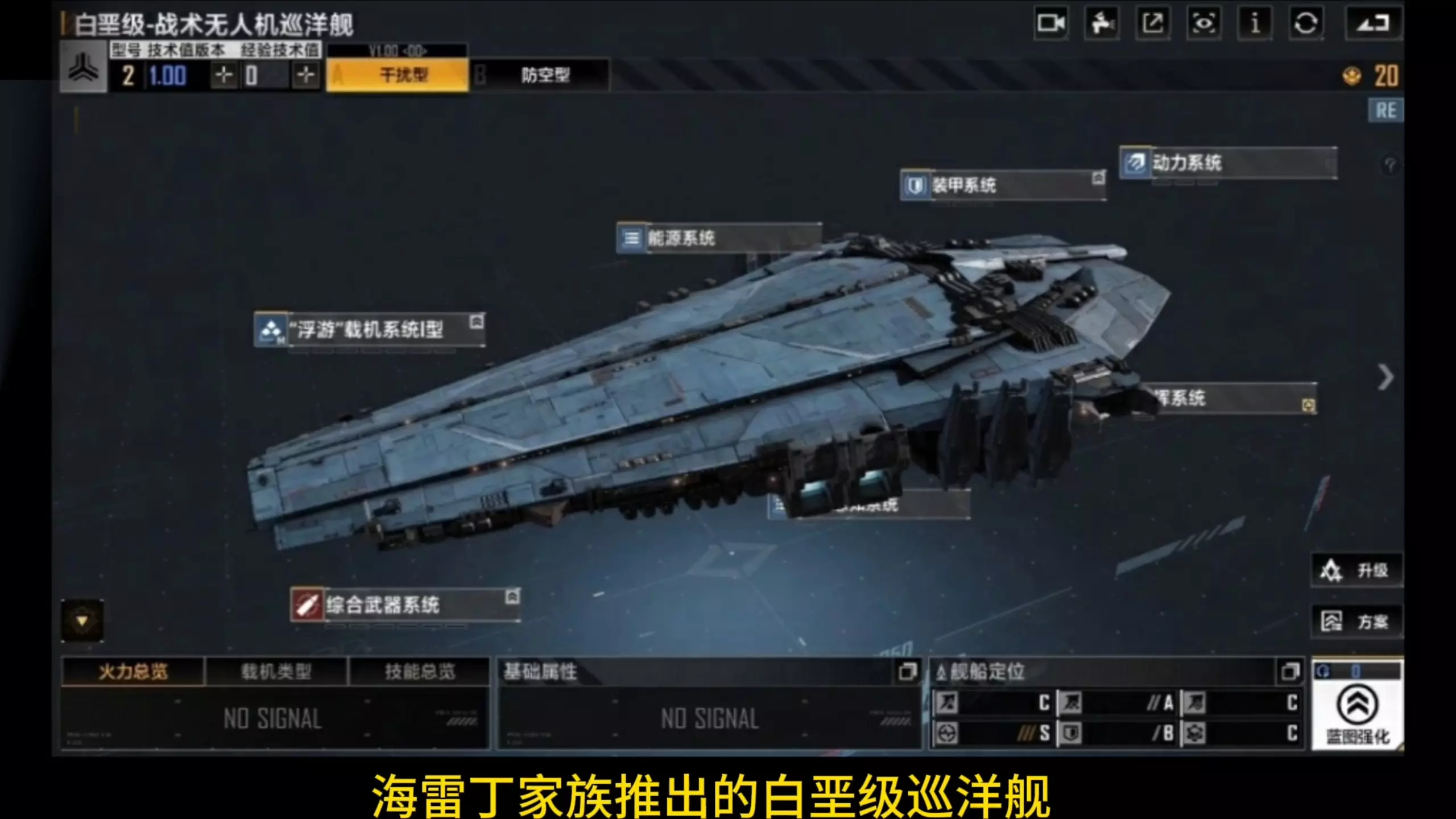 这是《无尽的拉格朗日》的新船前瞻,介绍了海雷丁家族的白垩级巡洋舰,它搭载“浮游”战机系统,能对高输出舰载机进行电子干扰,还有防空、规避等特殊机制,可提升舰队战场优势,能干扰拉格轰炸类舰载机的火力输出。