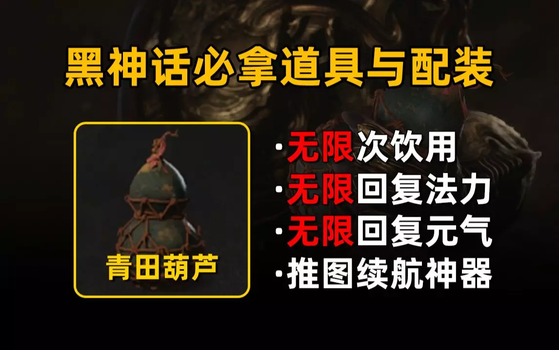 这是一期《黑神话:悟空》的实况解说,带来青田葫芦的获取攻略,展示了青田葫芦可随时间缓慢恢复盛酒量,搭配的酒与合饮也有不同效果,还展示了游戏内的披挂、影神图等内容。