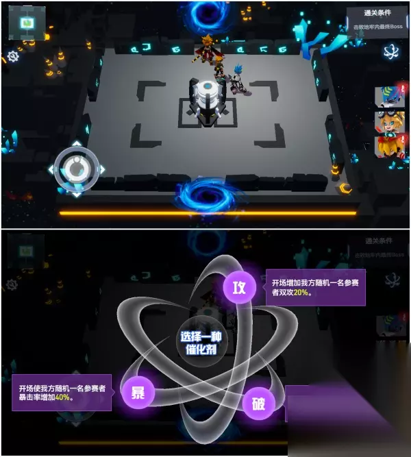 钥匙兑换界面 【关卡介绍】 该关卡会随机生成12个房间,房间之间会有传送门连接。除了起始房间和最后一个Boss房间外,其余房间都会随机生成一个包含怪物的战斗房间、一个只有宝箱的宝箱房间以及一个可以获得随机增益或恢复泉水的泉水房间。天使们一定要记得合理搭配参赛者,选择更适合队伍的buff来对抗关卡的最终boss! 此外,副本中的宝箱还可以赠送元力研究笔记、元力强化剂、元力化剂、代币奖励,为天使升级专属武器提供丰富的资源!