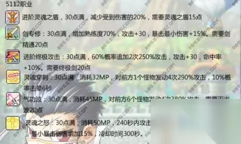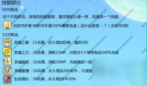 下面是技能加点: 一转:(共61点) 灵魂之盾:15点满。永久增加防御,魔防200 必满。(四转需要这个前置) 生命强化:10点满,永久提高HP20% 必满 灵魂敏捷:10点满,增加200命中,25的速度和20的跳跃。条件灵魂之盾1点 必满 灵魂跳跃:10点满,消耗10点MP,向前跳跃一段距离 必满 灵魂之刃:20点满,过度技能 加16点