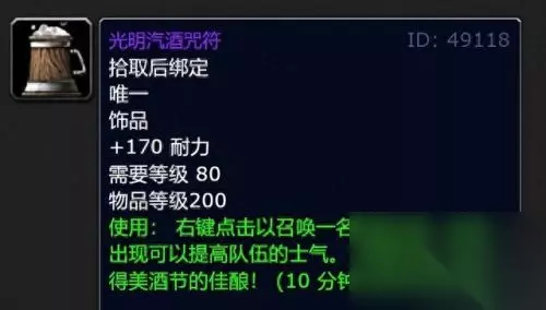 这其中最重要的饰品是光明汽酒咒和黑暗汽酒咒符,它们是WLK坦克前期堆耐力最好的饰品,两件可以一起带,一直用到HTOC开荒都非常给力。