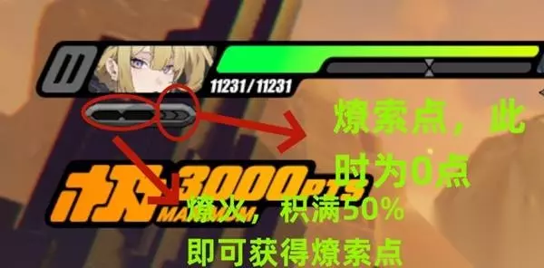 技能 【普通攻击】:造成五段攻击,第五段攻击命中敌人能和敌人链接在一起,进入【牵缠禁制】(以下简称链接),并累积【燎火】(以下简称能量),燎火累积50%即可消耗50%的燎火发动强化攻击,同时回复【燎索点】(以下简称能量点),累计3点【燎索点】后消耗所有【燎索点】释放连携技。 【特殊技】:对前方敌人进行攻击,并链接在一起,若已经链接,则直接引爆,释放期间受到攻击自动闪避,并回复25%的能量。 【连携技】:对前方敌人造成连续斩击,造成火属性伤害。 【终结技】:伊芙琳进入【焰舞觉醒】(以下简称强化状态),并持续整场战斗,消耗能量点释放连携技后,始终保留1点能量点;随后对前方敌人造成连续斩击,造成大量火属性伤害。 战斗简要说明 伊芙琳在战斗时,主要输出手段就是高倍率的连携技,连携技除了把怪物打进失衡,还可以通过积攒能量点,能量点需要能量积攒,能量可以通过普攻特殊技等手段叠加。如图所示,位于左边的就是能量槽,能量槽上限为100%,达到50%就可以长按普攻获得能量点,就是位于右边类似一个箭头,这个就是能量点了。