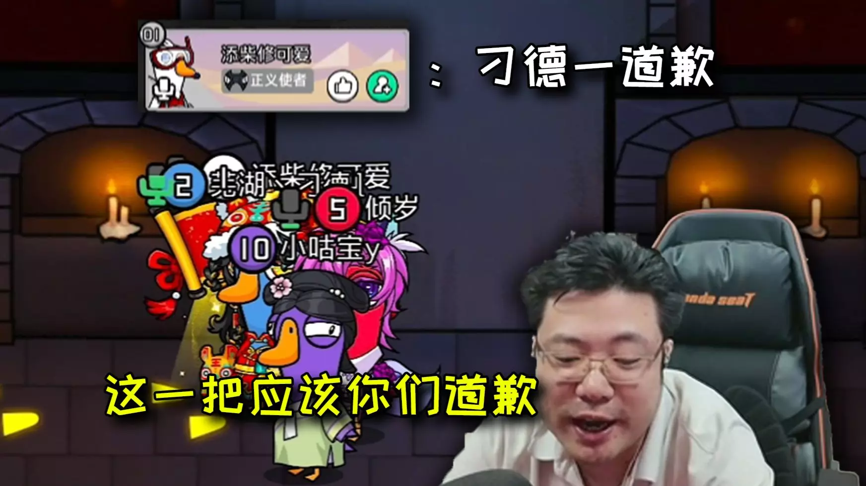 这是饭堂集合表演赛第四局鹅鸭杀的游戏内容,刁德一扮演正义使者,在游戏中凭借清晰逻辑,作为带刀好人精准刀掉炸弹狼,冯提莫也参与了该局游戏。