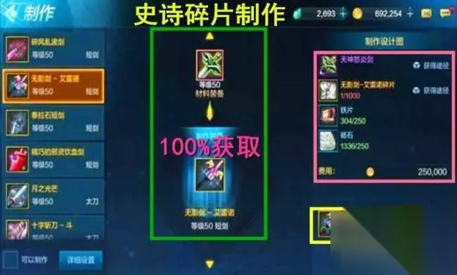 【五】史诗精粹制作者 在手游中,直接穿越了端游85版本的史诗制作系统,我们可以通过装备制作系统,直接制作出无影剑,不过,需要1000个“无影剑的精萃”,和其它一些材料,可以100%的获取无影剑!也就是说,就算是非酋爆不出无影剑,可以多刷深渊和祥瑞溪谷,利用碎片系统直接点出无影剑!