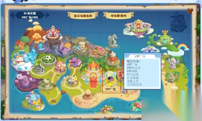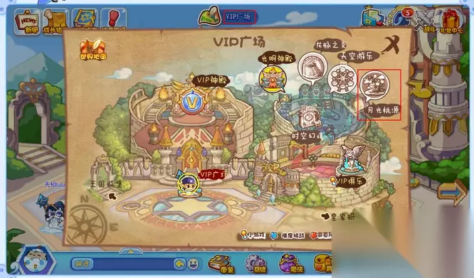 2、在世界地图丰富的场景列表中,精准找到VIP广场它是通往月光桃源的关键枢纽,点击进入后便向神秘之地迈进一大步。
