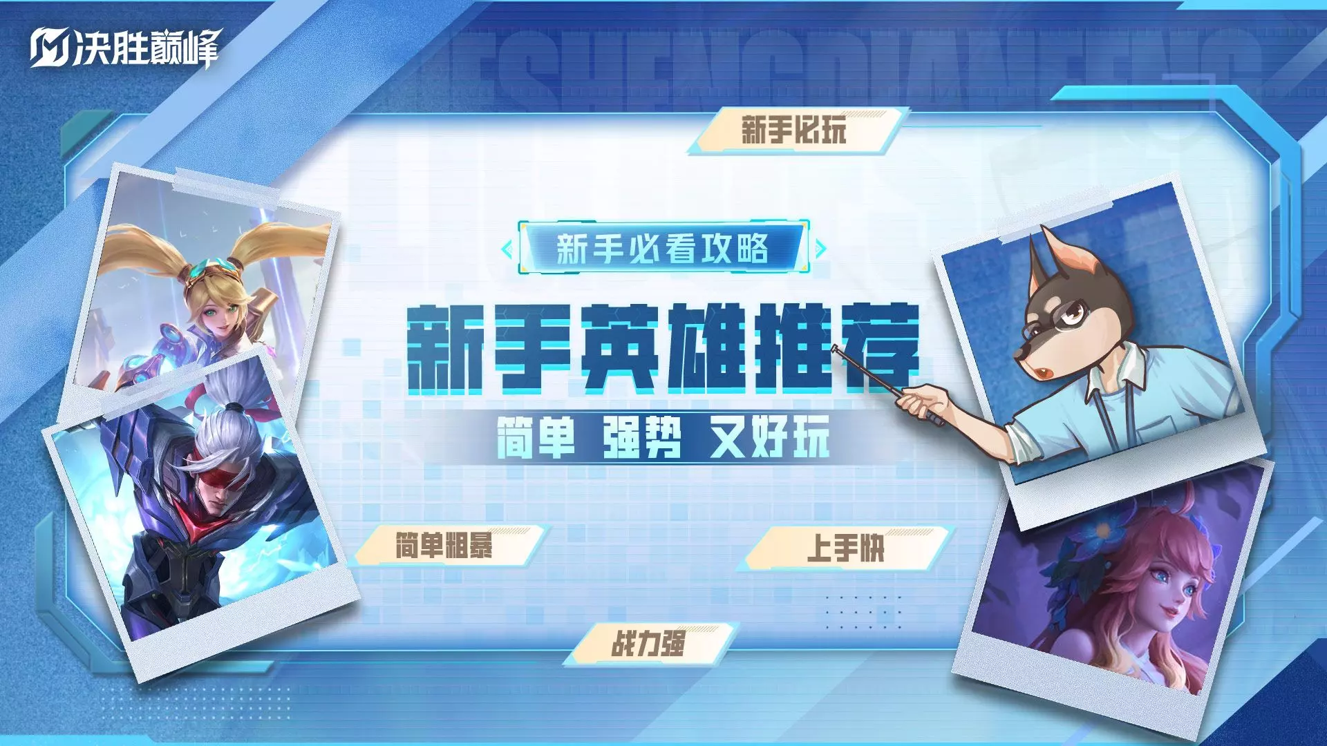 友友们好呀!*⸜( •ᴗ• )⸝* 如果你刚开始玩《决胜巅峰》不知道该玩什么英雄,那看这一条视频就够了!策划木杉根据大家常玩的职业分路,推荐了几个简单粗暴、上手…