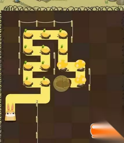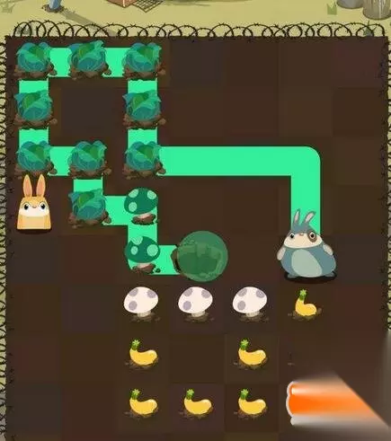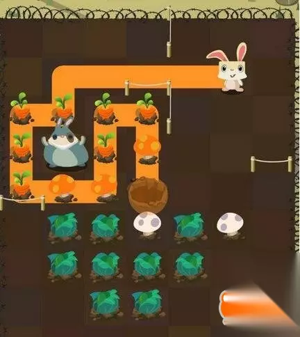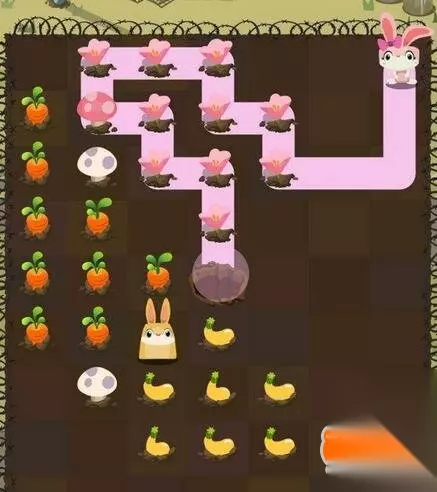 第四步:小黄兔从蘑菇开始,吃掉剩余所有蔬菜进洞;这一关非常麻烦,不过能够吃到所有的食物,也是非常开心的啦!