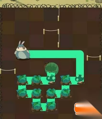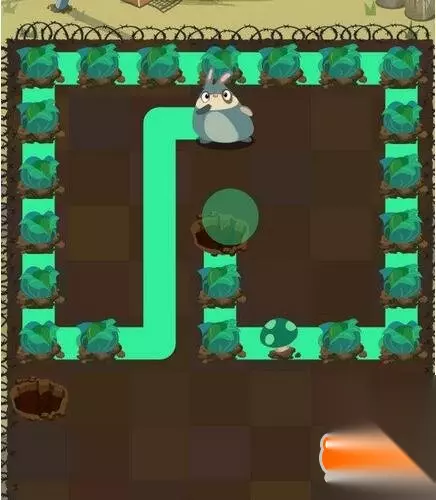 第二步:蓝胖兔从地图左侧开始,沿途吃光所有卷心菜进洞 第44关