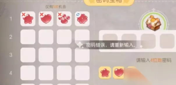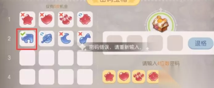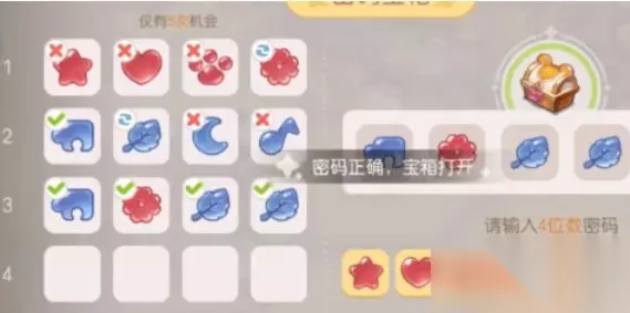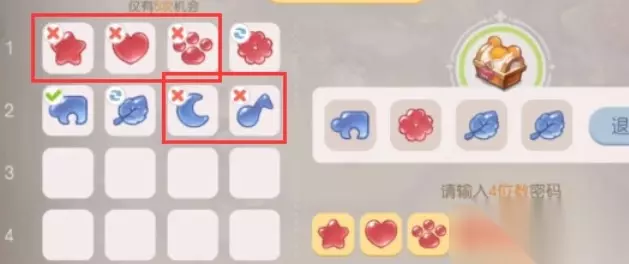 奥比岛密码宝箱如何开,玩家需要去打开其中的密码宝箱才能过关的,不知道如何开启这个对应的密码宝箱呢,通过猜图案才可以解开的,下面就来介绍下奥比岛密码宝箱怎么开。 奥比岛密码宝箱开启方法一览 玩家放置密码之后会出现三种提示,根据提示我们就可以知道密码。 一、提示说明: 1、叉号:当图案的左上角出现叉号证明这个图案是错误的密码。